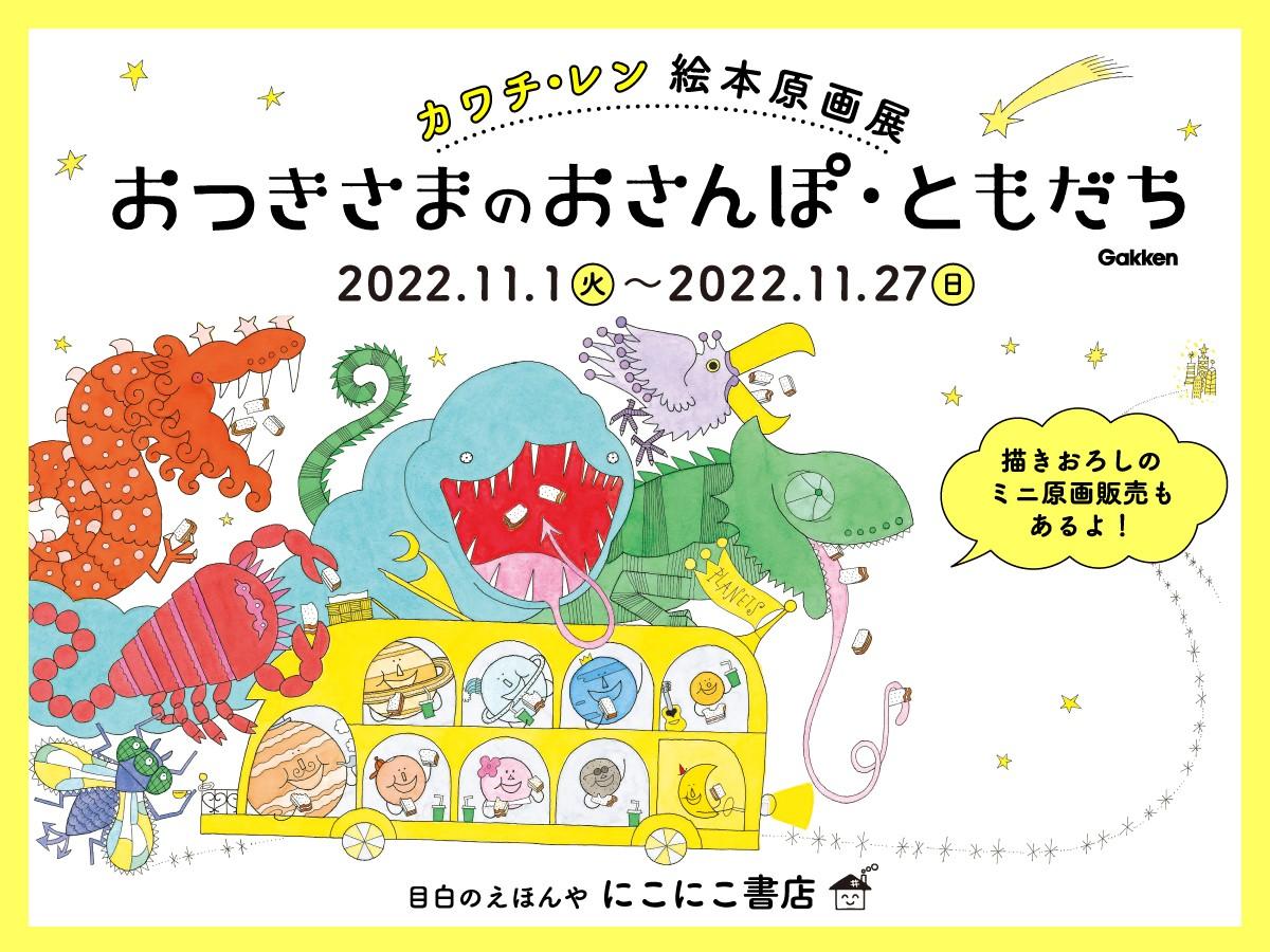 株式会社 学研ホールディングス(東京・品川/代表取締役社長:宮原博昭)のグループ会社、株式会社 Gakken(東京・品川/代表取締役社長:五郎丸 徹)より発売中の絵本『おつきさまのおさんぽ 新版』『おつきさまのともだち 新版』の原画展を、2022年11月1日(火)から11月27日(日)まで東京・目白の絵本専門店、にこにこ書店にて開催いたします。