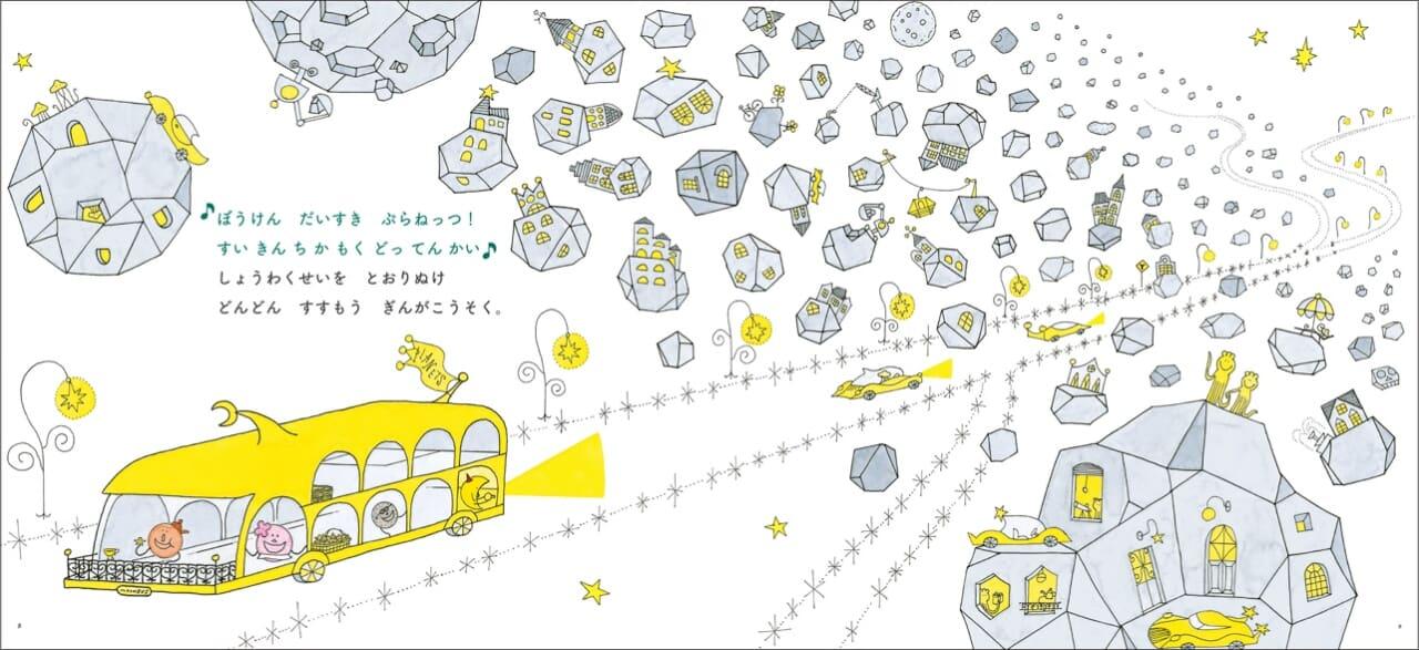 わくわく楽しいおつきさまの一夜の冒険を描いた『おつきさまのおさんぽ 新版』、仲間の惑星たちとわいわい愉快にバス旅行にでかけてハプニングがある『おつきさまのともだち 新版』の2冊の絵本の原画を厳選して展示する原画展が、東京・目白の絵本専門店にこにこ書店さんにて、開催されます。