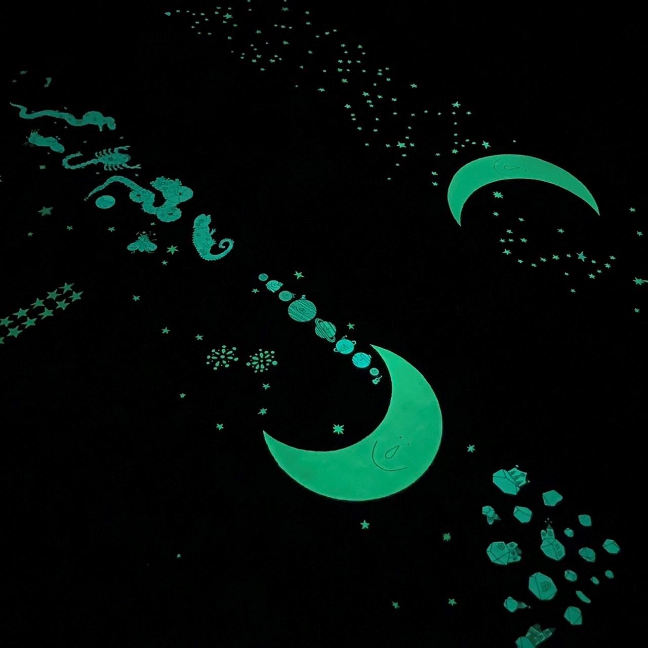 こちらのともだちポスターは、太陽系の惑星たちとモンスター(実は星座です)などなど…こちらもちょっぴり星のお勉強に。光る面積はともだちポスターの方が多いです。右上には話題の小惑星群。イトカワ、リュウグウを探す楽しみも。