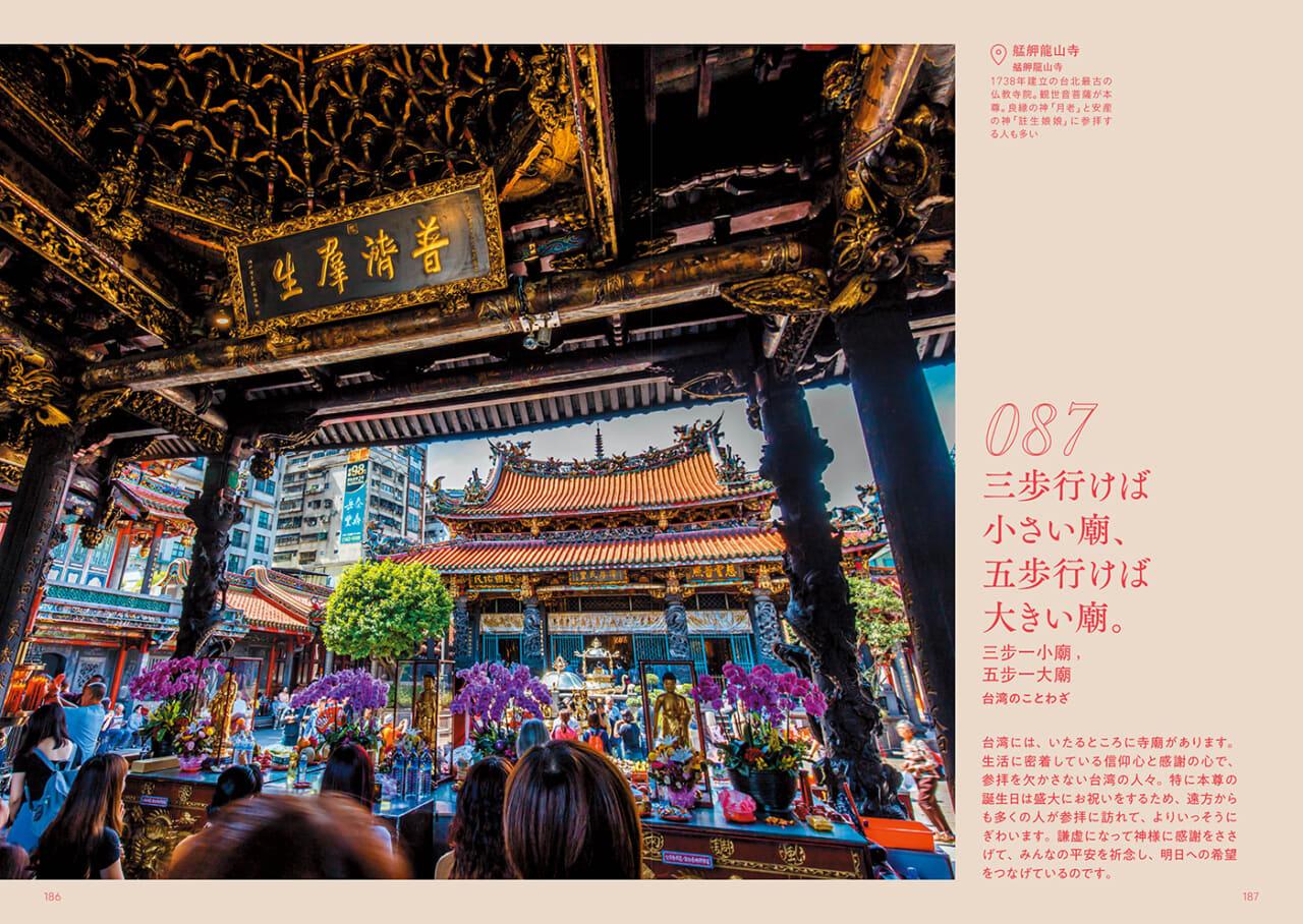 台北最古の仏教寺院・龍山寺でのお参りシーンをはじめ、参拝が生活に根付いている台湾の文化や風習など、長年取材を続けてきた地球の歩き方ならではの詳しい解説でより理解が深まります。