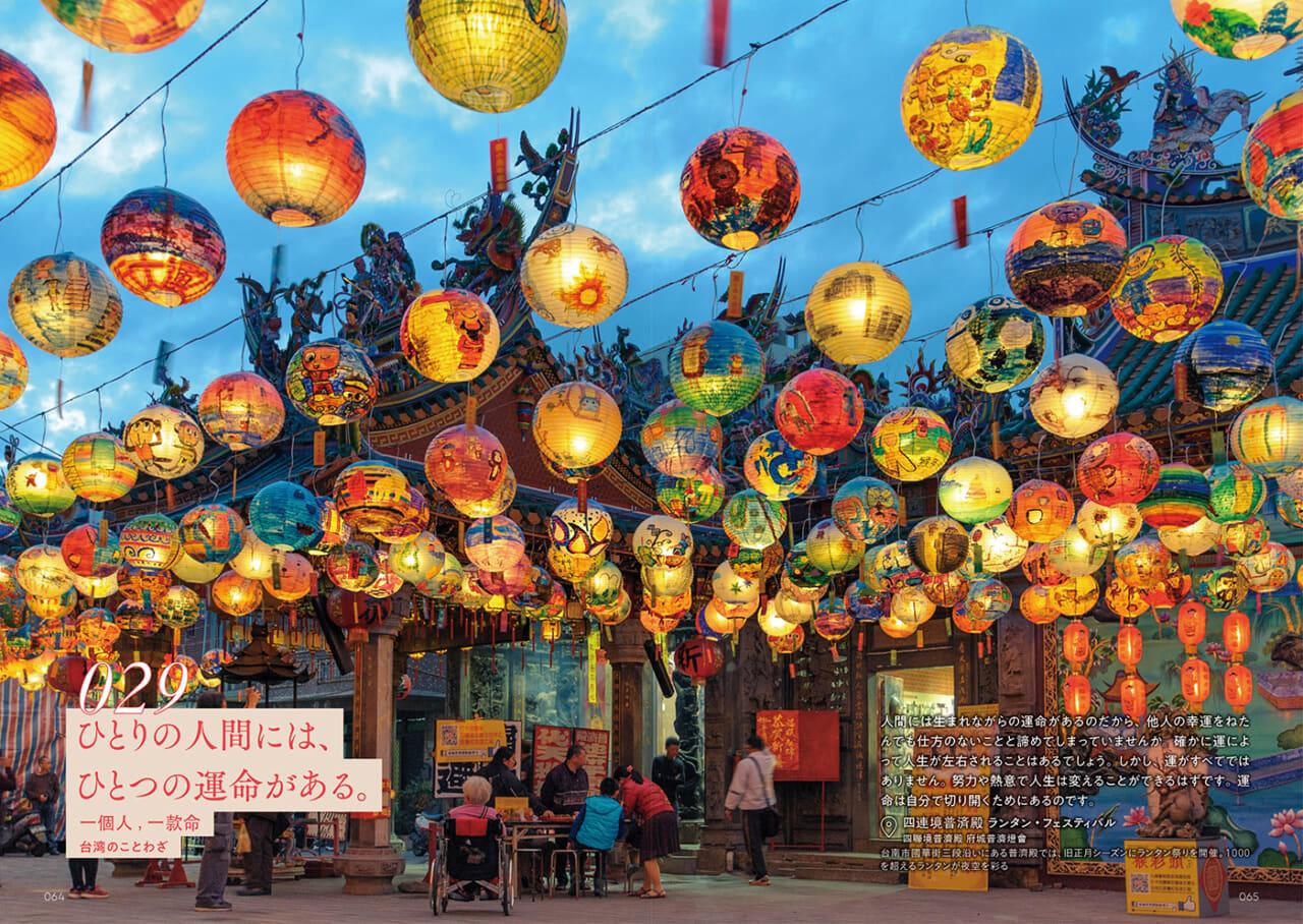 ちょっぴり疲れたとき、優しさに触れたいとき、台湾の愛がたっぷり詰まったことばと絶景から、癒やしとパワーをもらいましょう。美食と他者への思いやりにあふれた麗しの島から、100の美しい景色と、心に寄り添い、前向きになれるすてきなことばを集めました。