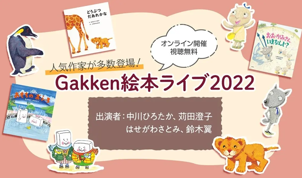 株式会社 学研ホールディングス(東京・品川/代表取締役社長:宮原博昭)のグループ会社、株式会社 Gakken(東京・品川/代表取締役社長:五郎丸 徹)は、2022年12月10日(土)10:00より「Gakken絵本ライブ2022」を配信いたします。
