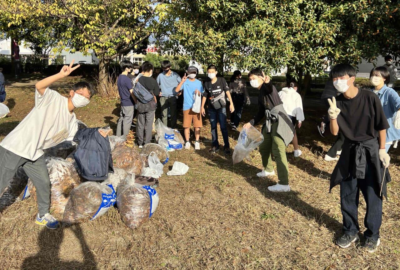 秋の晴天のもと、小学生から高校生までの生徒、保護者、教師が2時間ほどゴミ拾いに汗をかきました。富士宮市の潤井川沿いを清掃した富士宮西校の生徒の一人は、大きな鍋のような金属を見つけ、手や足を汚しながらそのゴミを拾い上げていました。拾った後、生徒はとても晴れ晴れとした表情をしていました。