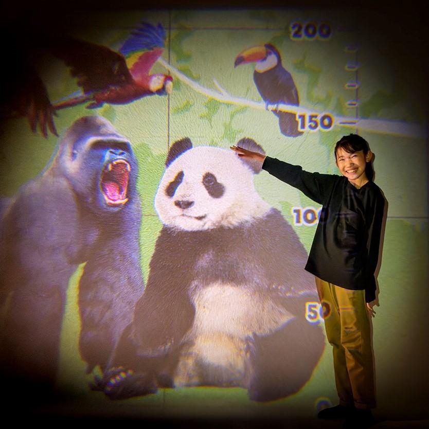 体がすっぽり入る大きさで映せるので、まるでほんものの世界に入りこんだような没入体験を味わえます。