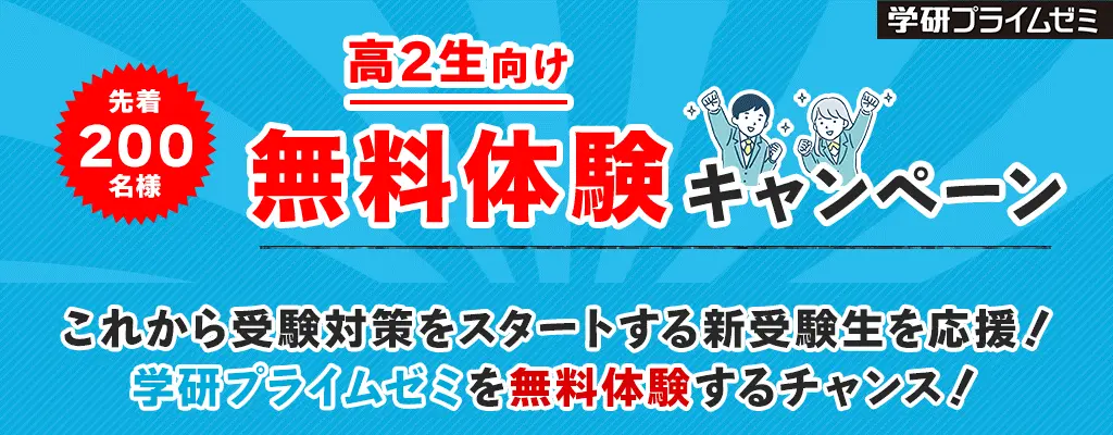 株式会社 学研ホールディングス(東京・品川/代表取締役社長:宮原博昭)のグループ会社、株式会社 Gakken(東京・品川/代表取締役社長:五郎丸 徹)は、2022年11月15日(火)から、難関大受験対策のオンライン映像授業「学研プライムゼミ」の公式ウェブサイトにて、高2生向けの「無料体験キャンペーン」の受講者募集を、先着200名様を対象に開始いたしました。