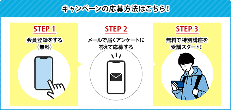 公式サイトで無料会員登録&簡単なウェブアンケートに答えるだけで、無料の受講体験にご応募いただけます。先着200名様まで限定ですので、まずは早めのご応募を。