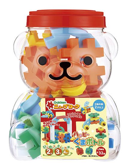 また今回はダブルキャンペーンも開催しております。サンプリング商品の到着後に、お子さまが遊ばれた様子をハッシュタグ「#ニューブロック」「#ニューブロックでクリスマス」を付けてツイートしていただいた方の中から抽選で10名様に「Gakkenニューブロックハッピーくまボトル」をプレゼントします。