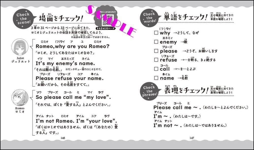 映画のパンフレットのように物語を紹介しつつ、お話にまつわる英単語も掲載しています。