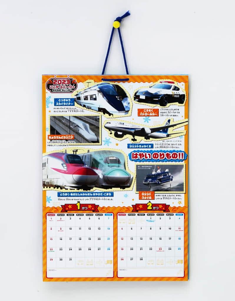 ユニークなのりもの盛りだくさんののりものカレンダーやのりものシールも付いて盛りだくさん!