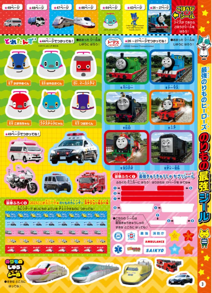 きかんしゃトーマスやとれたんずなど、人気ものやのりものいっぱいの楽しいシールだ!