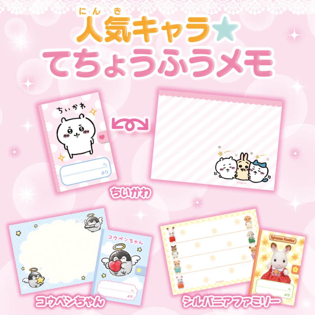 半分に折ると、まるで手帳のようなデザインになるメモ。ちいかわ、コウペンちゃん、シルバニアファミリーと大人気のキャラクターが大集合です! メッセージをかいて、なまえをかいて、大切な人にプレゼントしましょう!