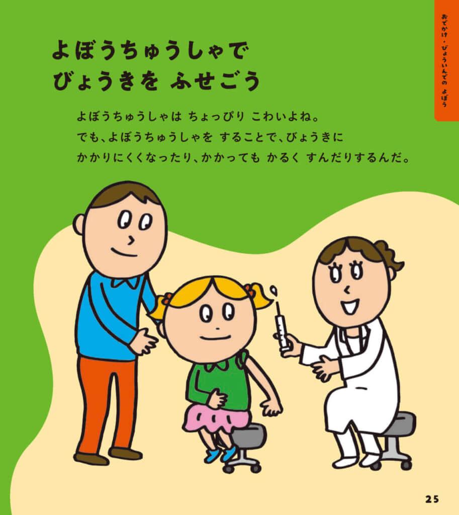 ワクチンの予防接種で病気を防ぐなど、病院で行う予防もしっかり紹介。
