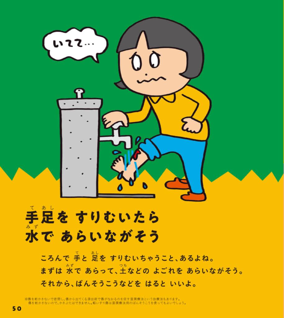 ・けがのとき:手足をすりむいたら水であらう/かさぶたはそっとしておくなど。