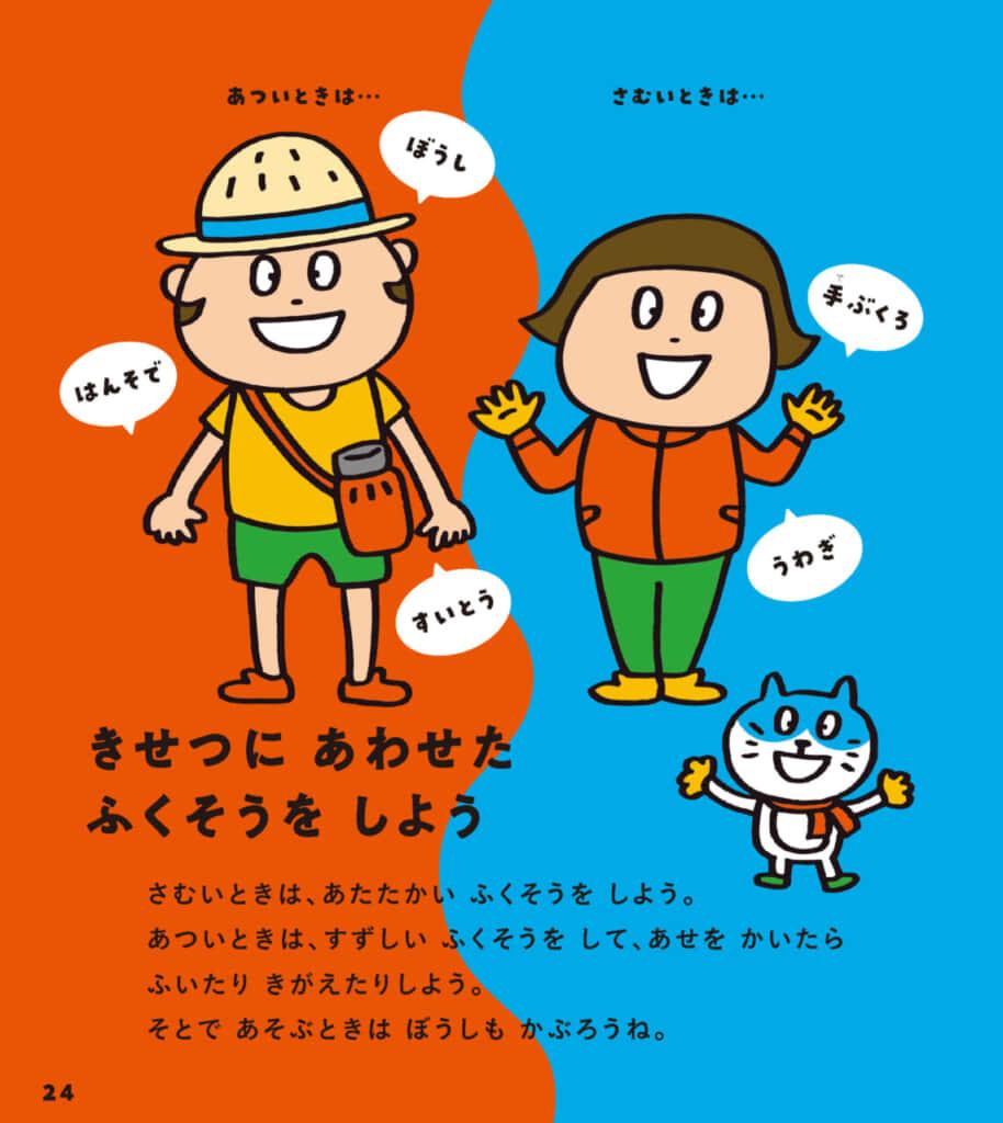 マスクをする/人との間隔をあける/季節に合わせた服装をするなど、人から感染しないためのルールや体調を整えるためのルールを紹介。