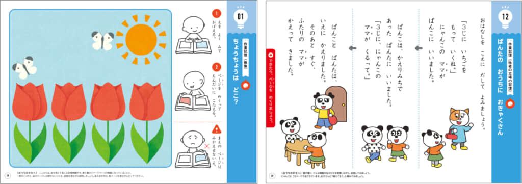小学校入試で出題される記憶問題の練習にもぴったり。声に出してお話を読めば、音読の練習にもなります。