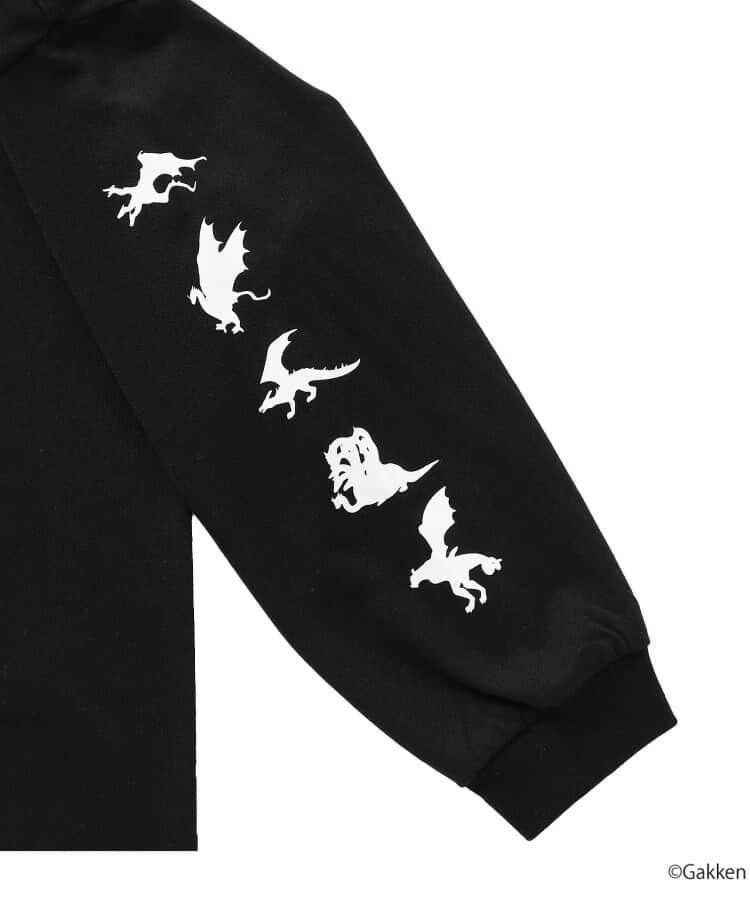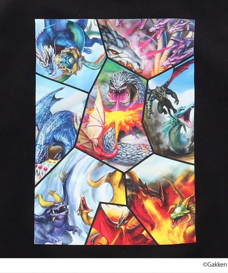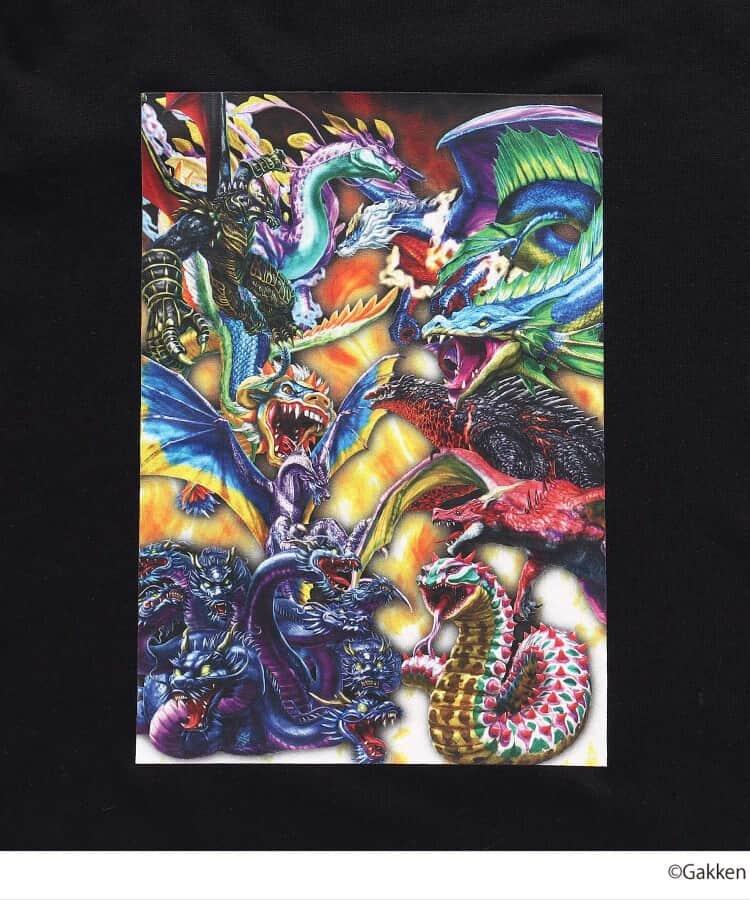 色彩豊かなイラストが細部にまで繊細に表現された転写プリントのロンT&スウェットは、ワクワクが止まらない、今にもドラゴンや恐竜が飛び出してきそうな迫力のある世界観がデザインされたアイテム。大人っぽいベーシックカラーのボディだからこそ、色鮮やかなイラストが映えるカッコいいコラボ商品になりました。