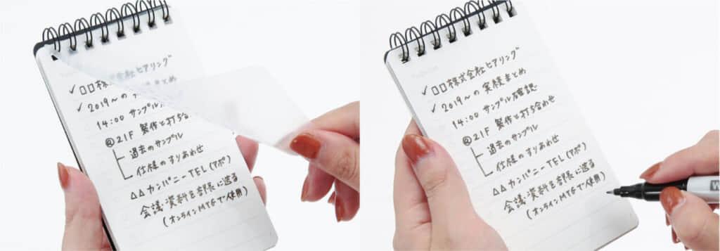 さっと書いてさっと消せ、本文サイズがW75×H142mmとコンパクトなので外出中に浮かんだアイデアを書き留めたり、ToDoリストをお買い物メモとして使用するなど様々なシーンで役立ちます。