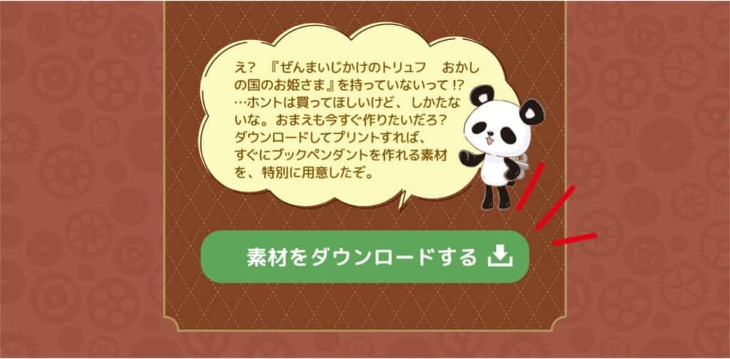 なんと、第一作『ぜんまいじかけのトリュフ おかしの国のお姫さま』についていた自分だけのブックペンダントブックが作れる用紙のデータをダウンロードできます!