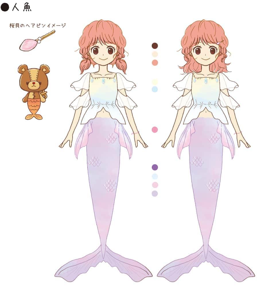 - 主人公のアンの人魚姿。アンは人魚、トリュフも熊魚になって、美しい海の中を泳ぎ回って大冒険します!