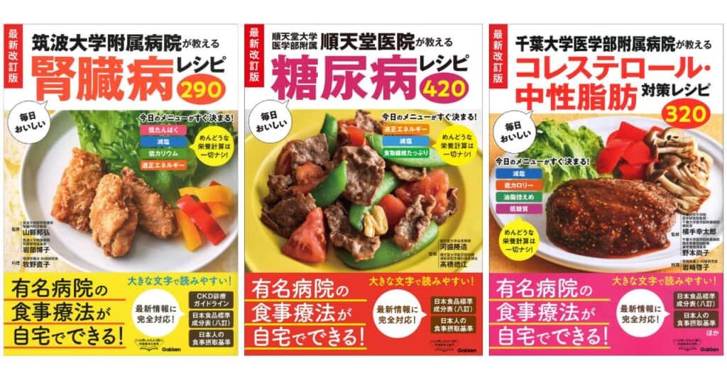 株式会社 学研ホールディングス(東京・品川/代表取締役社長:宮原博昭)のグループ会社、株式会社 Gakken(東京・品川/代表取締役社長:五郎丸徹)は、2022年12月15日(木)に『最新改訂版 筑波大学附属病院が教える 毎日おいしい腎臓病レシピ290』『最新改訂版 千葉大学医学部附属病院が教える 毎日おいしいコレステロール・中性脂肪対策レシピ320』、2023年1月19日(木)に『最新改訂版 順天堂医院が教える毎日おいしい糖尿病レシピ420』を発売いたします。