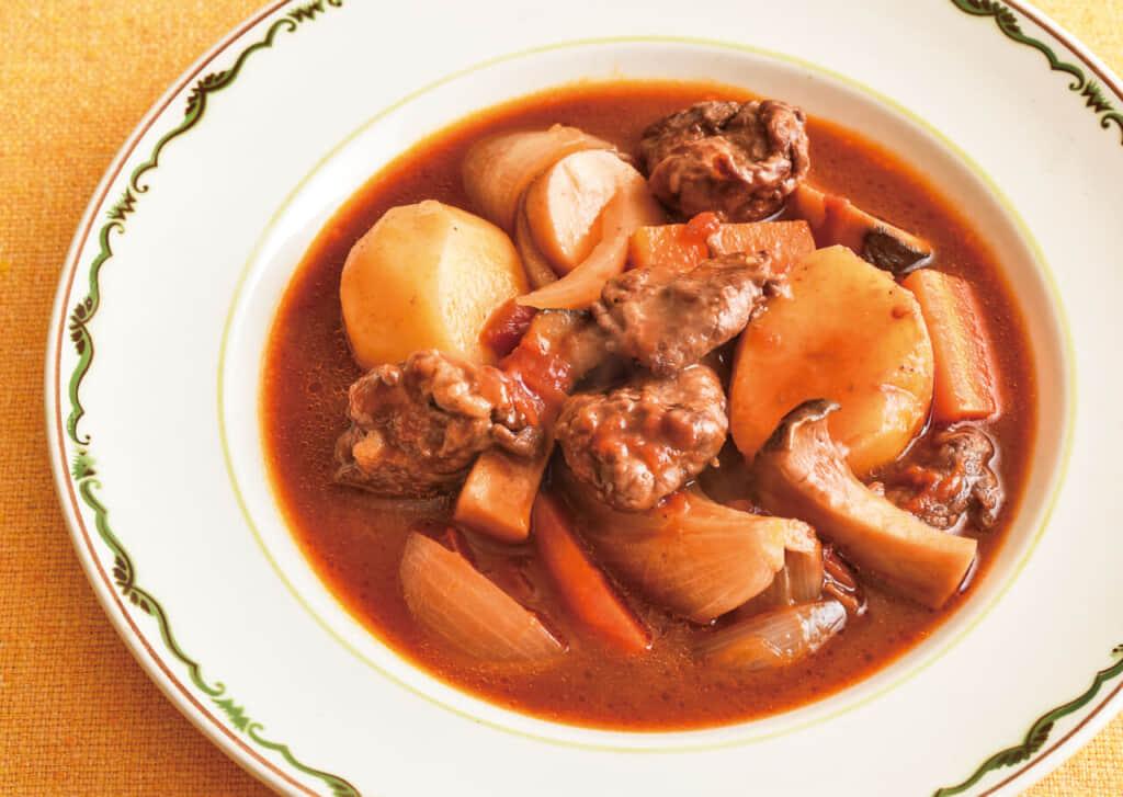 - ビーフシチューも、牛もも薄切り肉を使えば、低コレステロールのごちそうメニューに