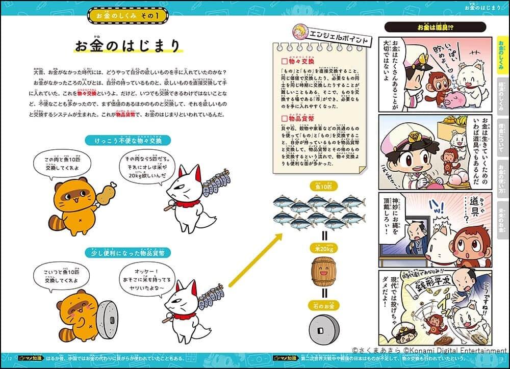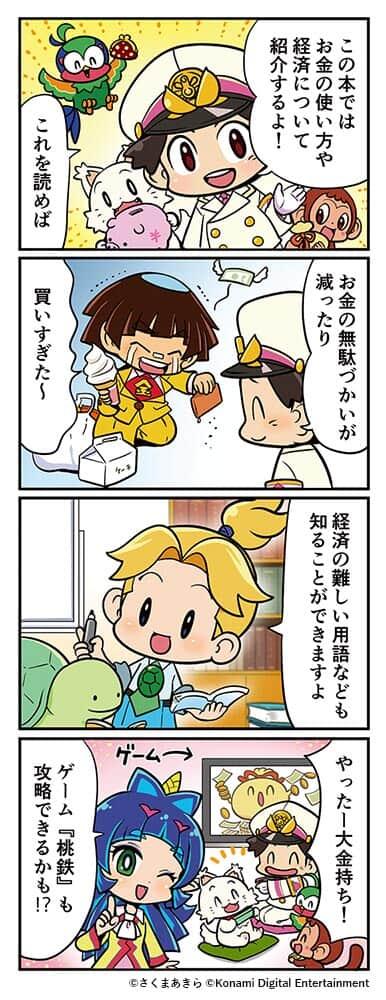 本書では、ゲーム内で物件を購入したり、資産を増やしたりしていくなかで欠かせない知識「お金・経済のしくみ」について、お札や硬貨、キャッシュレス決済、税金、投資、年金、保険など100個のテーマを収録。お金・経済のさまざまな知識を解説しています。学習のおさらいができるマンガ・クイズ、お金・経済にまつわる歴史人物・スポット紹介ページ、おこづかい帳なども収録。とくに4コママンガの収録数は、前作『47都道府県地理・歴史攻略』より50%以上増量予定だったとのことで、子どもたちが楽しく学ぶきっかけになると期待が寄せられていましたが、はたしてキングボンビーは本書でどんな暴走をしているのでしょうか。この結末は、ぜひ本書を実際に読んで、確かめてみてください。