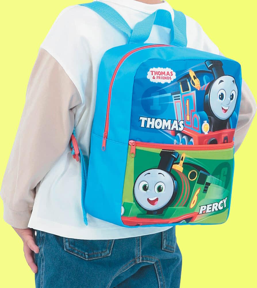 大人気コンビ、トーマスとパーシーのかわいいリュックは、ポケットつきでお出かけに活躍まちがいなし☆ 500mlペットボトルが2~3本くらい入るサイズです。
