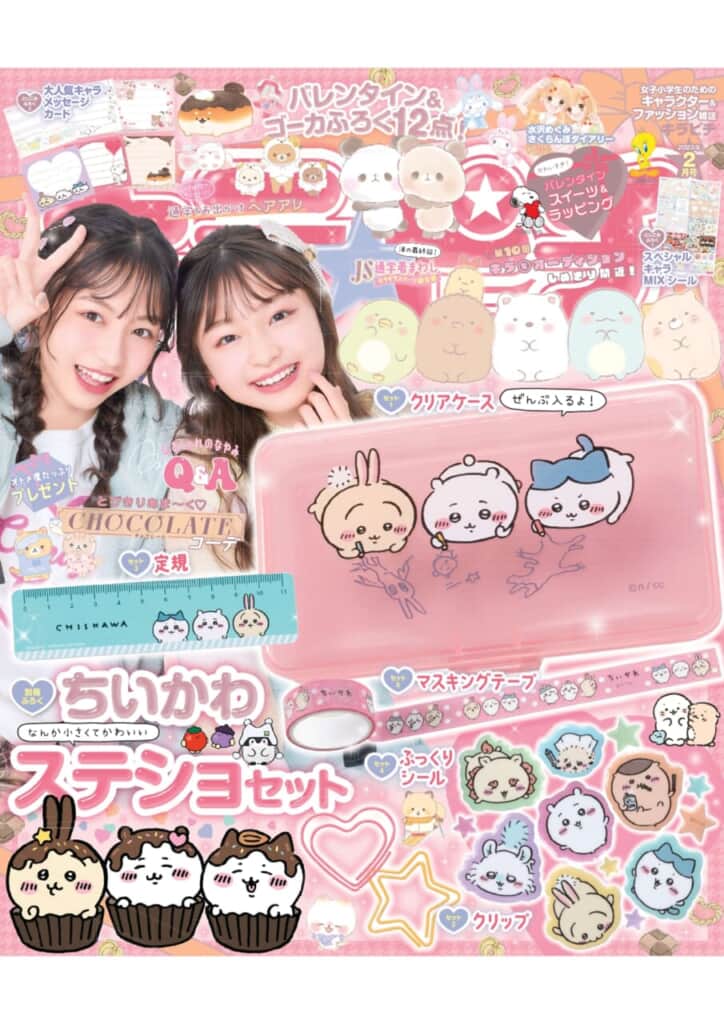 • 「ちいかわ なんか小さくてかわいいステショセット」がふろく! 女子小学生のためのキャラクター&ファッション雑誌『キラピチ2月号』発売! 2023年01月12日 「ちいかわ なんか小さくてかわいいステショセット」がふろく! 女子小学生のためのキャラクター&ファッション雑誌『キラピチ2月号』発売!