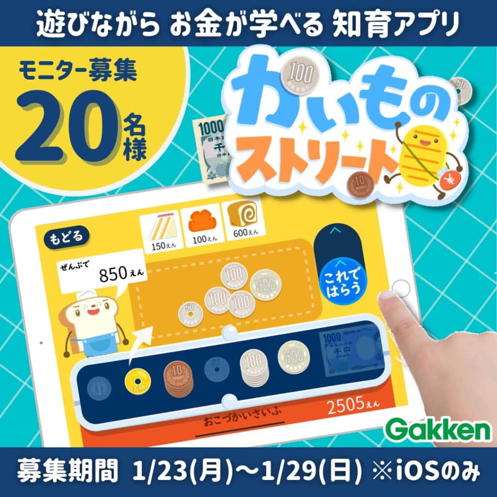 • お子さまがお金に興味をもったらチャンス! 7歳までに身につけたい「おかねのきほん」が学べる、学研の知育アプリ『かいものストリート』がiOS版モニター20名を募集開始! 2023年01月23日 お子さまがお金に興味をもったらチャンス! 7歳までに身につけたい「おかねのきほん」が学べる、学研の知育アプリ『かいものストリート』がiOS版モニター20名を募集開始!