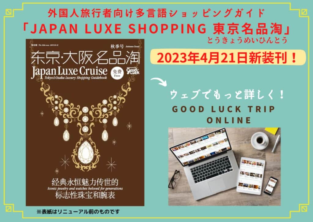 • 【地球の歩き方】訪日外国人向けフリーマガジン『JAPAN LUXE SHOPPING 東京名品淘』を新装刊! インバウンド市場の回復に合わせて、東京のラグジュアリーな最旬ショッピング情報をご紹介 2023年02月09日 【地球の歩き方】訪日外国人向けフリーマガジン『JAPAN LUXE SHOPPING 東京名品淘』を新装刊! インバウンド市場の回復に合わせて、東京のラグジュアリーな最旬ショッピング情報をご紹介