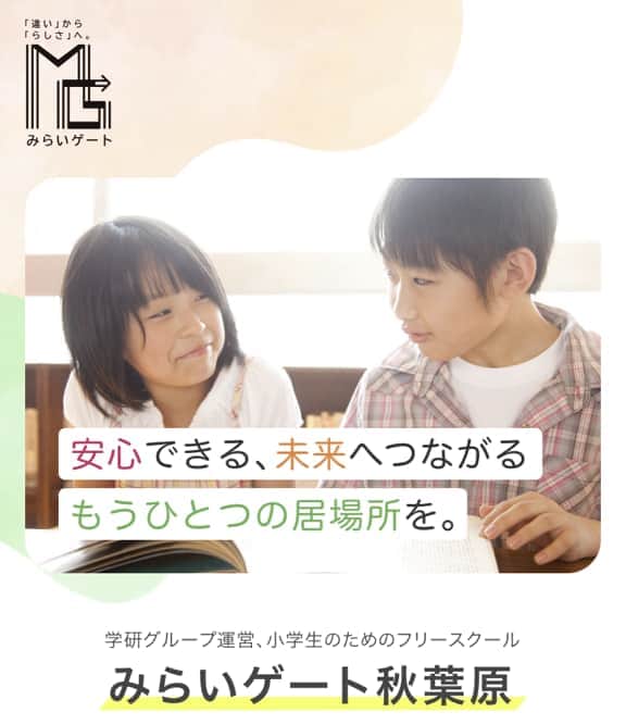 • 学研グループのフリースクール「みらいゲート 秋葉原」、Webページ公開! 2023年02月09日 学研グループのフリースクール「みらいゲート 秋葉原」、Webページ公開!