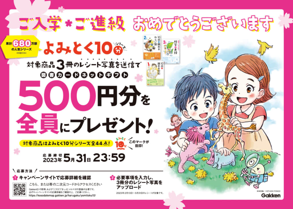 • 累計680万部突破「よみとく10分」シリーズ キャンペーン実施中! 3冊ご購入で図書カードネットギフト500円分を全員にプレゼント! 2023年02月20日 累計680万部突破「よみとく10分」シリーズ キャンペーン実施中! 3冊ご購入で図書カードネットギフト500円分を全員にプレゼント!