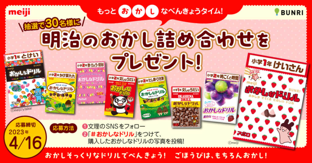 • ちょっと“おかし”な勉強タイム? 文理と明治がコラボした小学生向けドリル「おかしなドリル」が新登場! 2023年02月14日 ちょっと“おかし”な勉強タイム? 文理と明治がコラボした小学生向けドリル「おかしなドリル」が新登場!