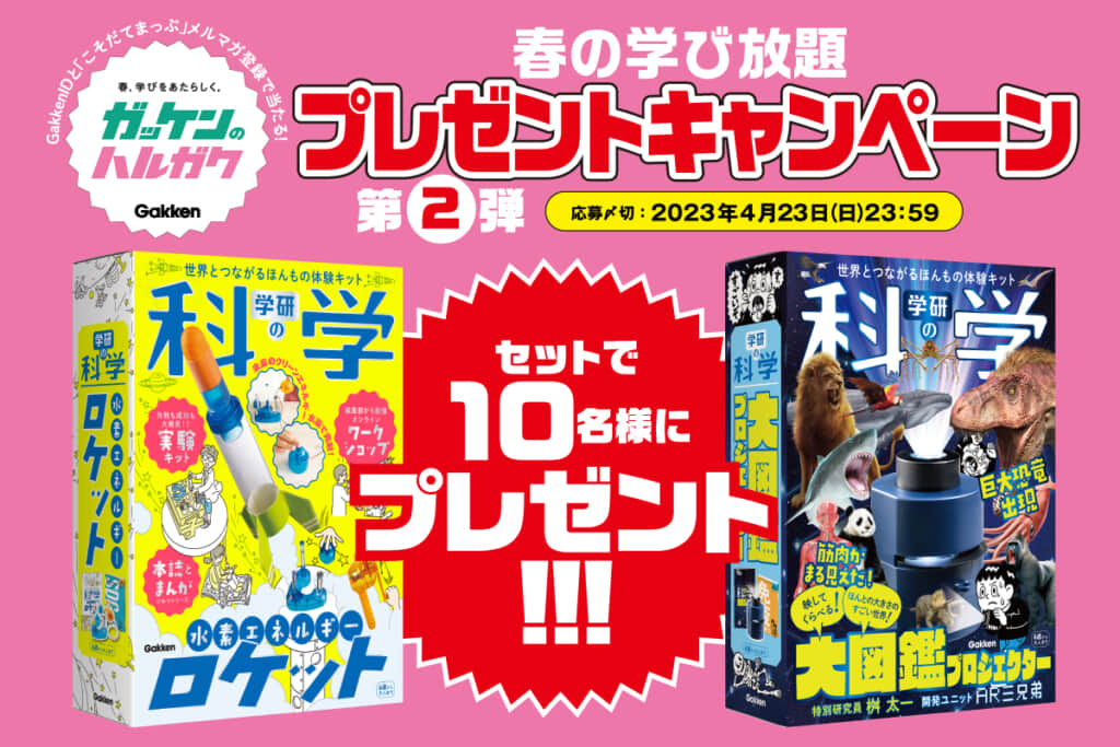 • 【ガッケンのハルガク】「Gakkenの商品・サービスを買うと抽選で555名様に豪華賞品が当たる!!」キャンペーン開催 2023年02月02日 【ガッケンのハルガク】「Gakkenの商品・サービスを買うと抽選で555名様に豪華賞品が当たる!!」キャンペーン開催