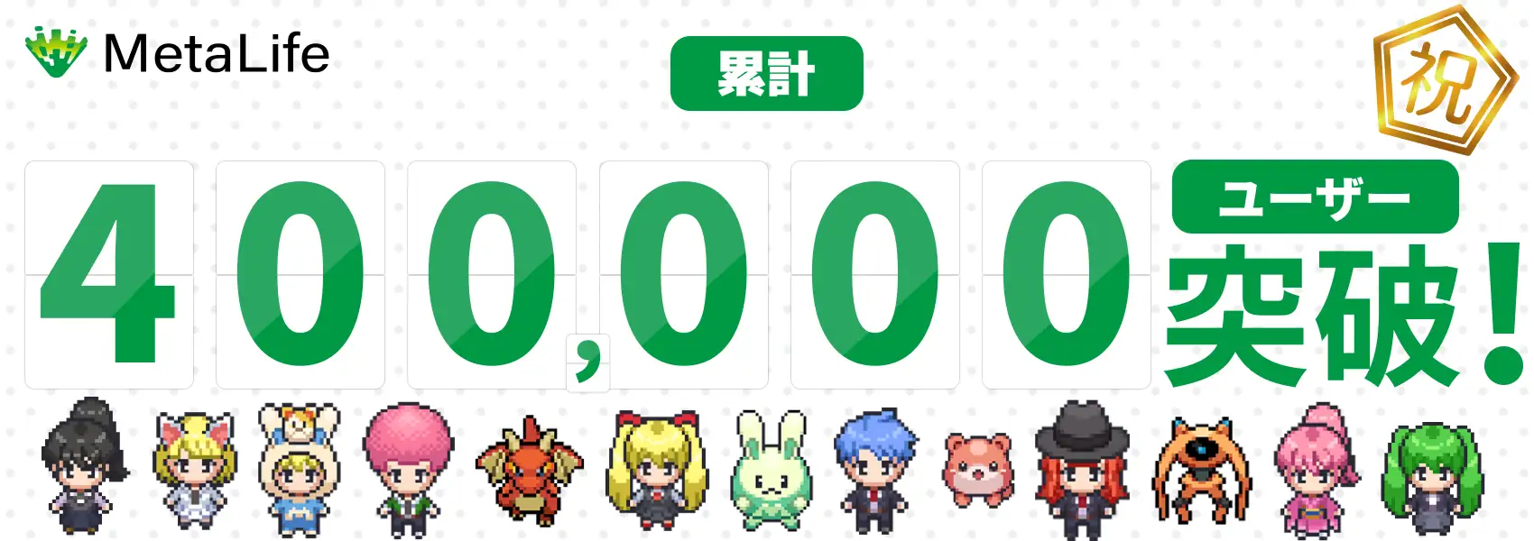 • MetaLife、累計ユーザー数40万人を突破!【メタバース×リモートワーク】 2023年12月06日 MetaLife、累計ユーザー数40万人を突破!【メタバース×リモートワーク】