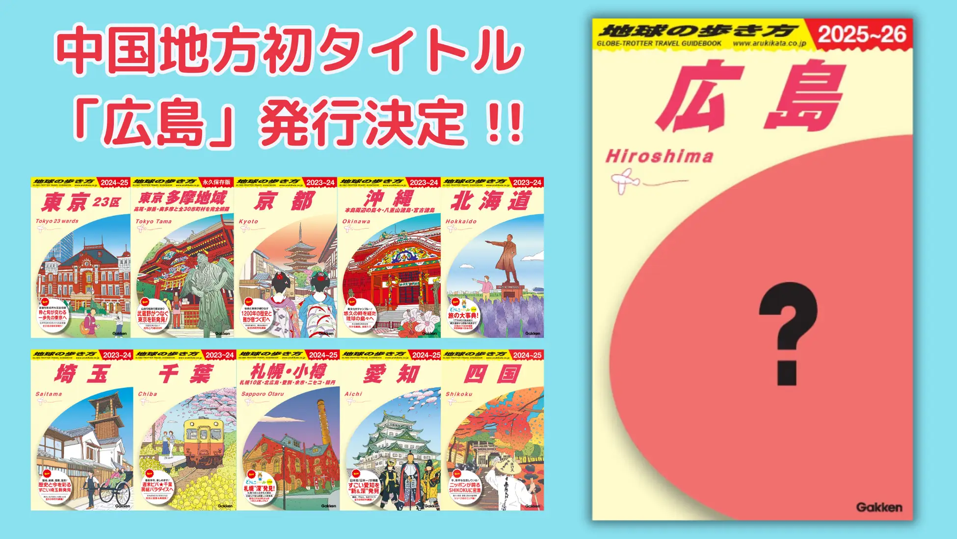 • 「地球の歩き方」より初の中国地方タイトル「広島」が2024年夏前に発行決定! 全23市町の奥深い魅力をとことん追求するガイドブック。県民・在住経験者参加型アンケートキャンペーンもスタート! 2023年12月07日 「地球の歩き方」より初の中国地方タイトル「広島」が2024年夏前に発行決定! 全23市町の奥深い魅力をとことん追求するガイドブック。県民・在住経験者参加型アンケートキャンペーンもスタート!