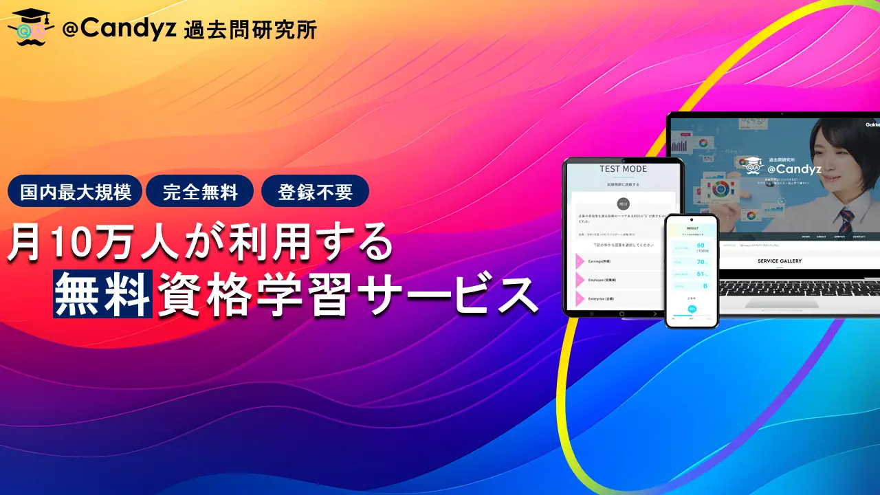 • \無料で学び放題/ 国内最大級の資格学習プラットフォーム「過去問研究所 @Candyz」利用者数10万人を突破 2023年12月08日 \無料で学び放題/ 国内最大級の資格学習プラットフォーム「過去問研究所 @Candyz」利用者数10万人を突破