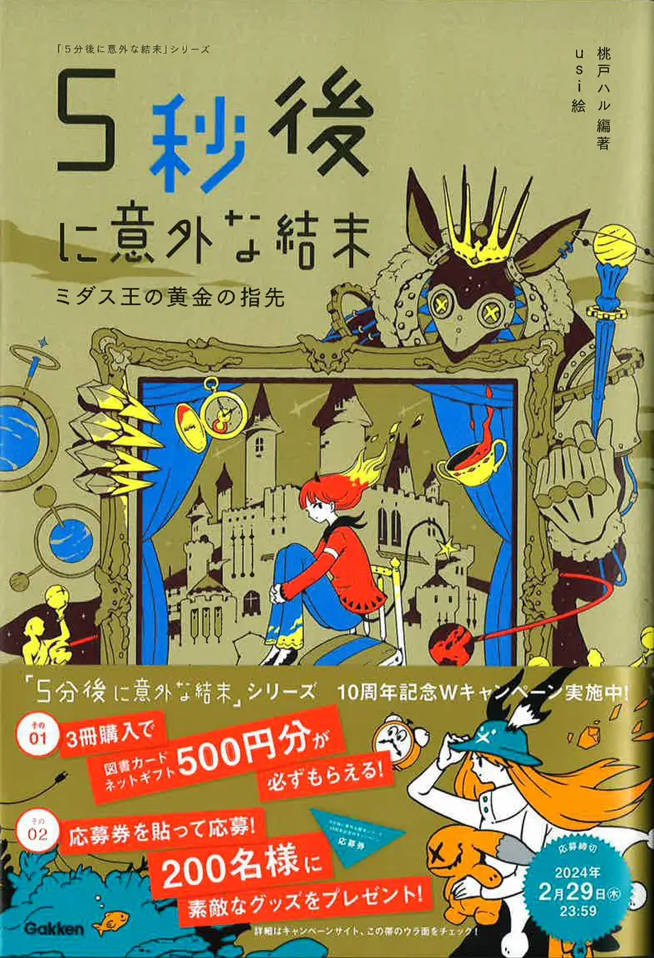 • シリーズ累計500万部突破! 「5分後に意外な結末」シリーズの最新刊、『5秒後に意外な結末 ミダス王の黄金の指先』が発売!! 2023年12月21日 シリーズ累計500万部突破! 「5分後に意外な結末」シリーズの最新刊、『5秒後に意外な結末 ミダス王の黄金の指先』が発売!!