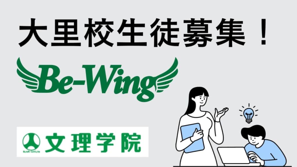 甲府市にある文理学院大里校でBe-Wing新年度生(中・高生)の募集を開始しました。大里校では今年度「Be-Wing」という新しい指導形態を導入します。新学年の授業を3月からスタートするのにさきがけ、この1月から新年度生の募集を開始しています。