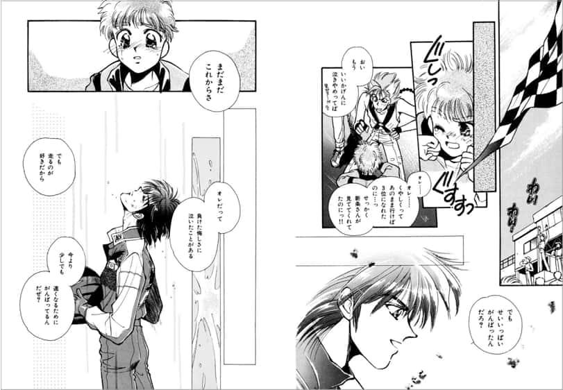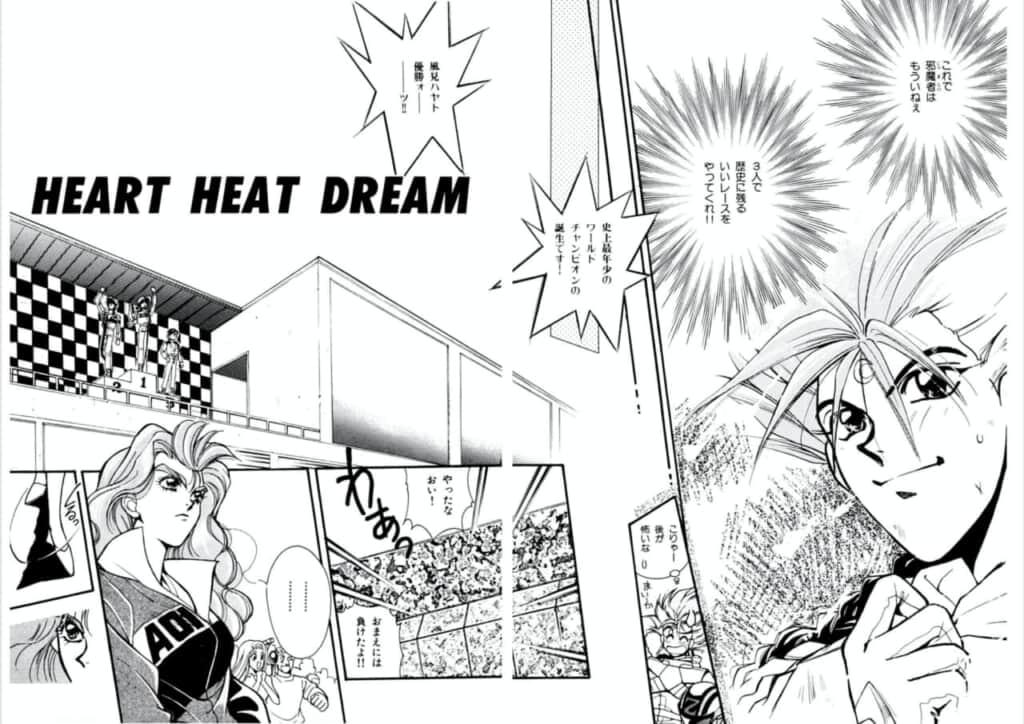 - 『新世紀GPXサイバーフォーミュラ』電子版 本文ページより_テレビ版ハヤト総合優勝後のセレモニーを描いた『HEART HEAT DREAM』の冒頭は、テレビ終盤の名場面