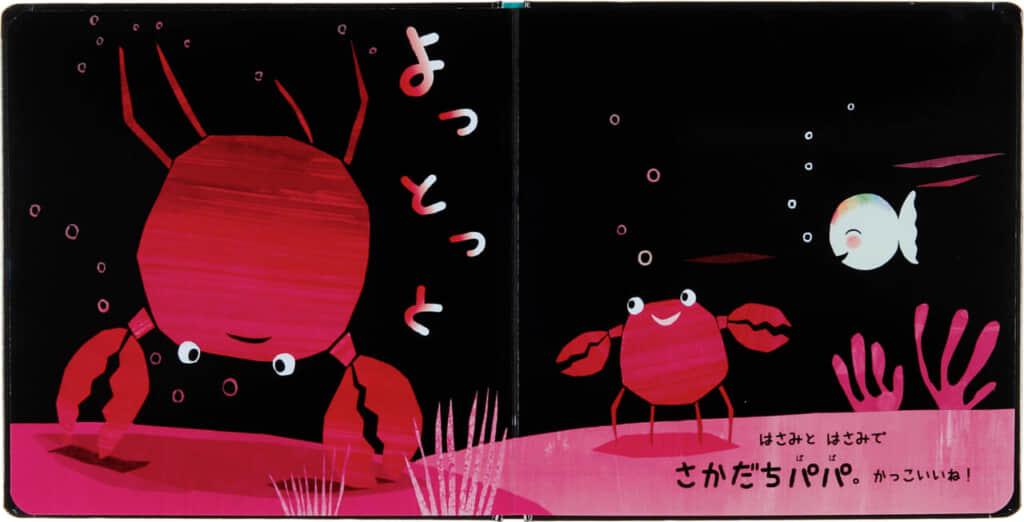 「よっとっと」と、ふたつのはさみでさかだちしてみせる「さかだちパパ」。