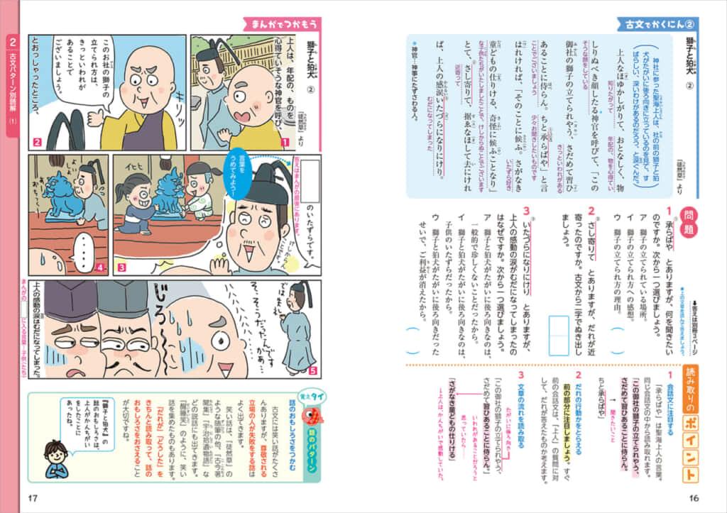 本書のメイン部分は以下のように構成されています【まんがでつかもう→古文(漢文)でかくにん】。
