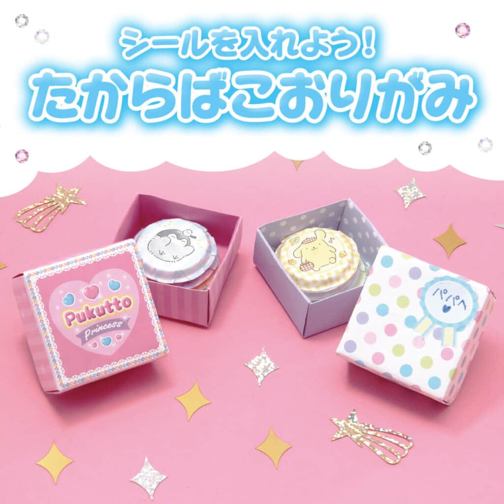 - ぷくっとシールや、お菓子、ビーズなどを入れられる、かわいいたからばこが折れるおりがみ! デザインは2種類から選べます。