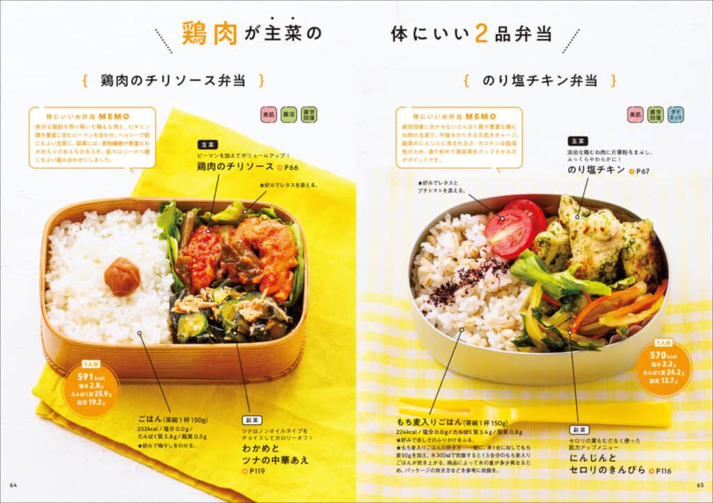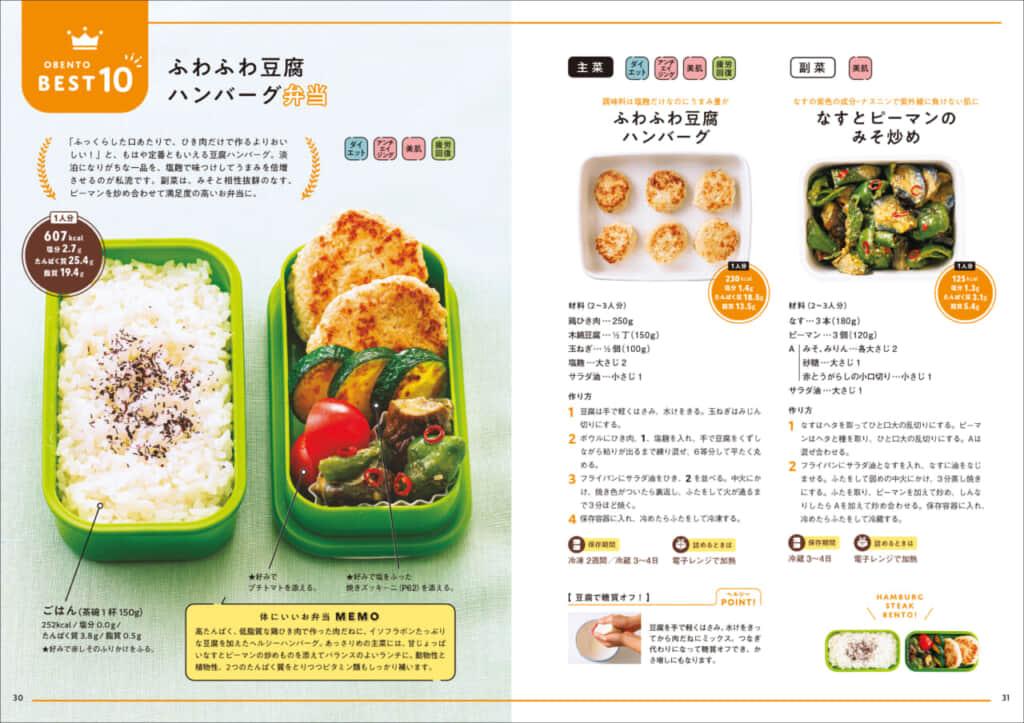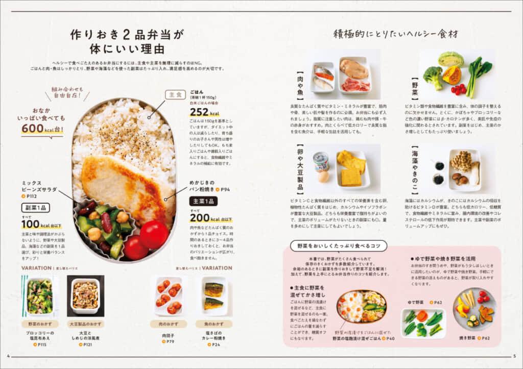 体にいい作り置きおかずの保存法や保存期間の目安、詰めるときのポイント、栄養量も一目でわかるので、お弁当作りが初めての人でも安心してチャレンジできます。