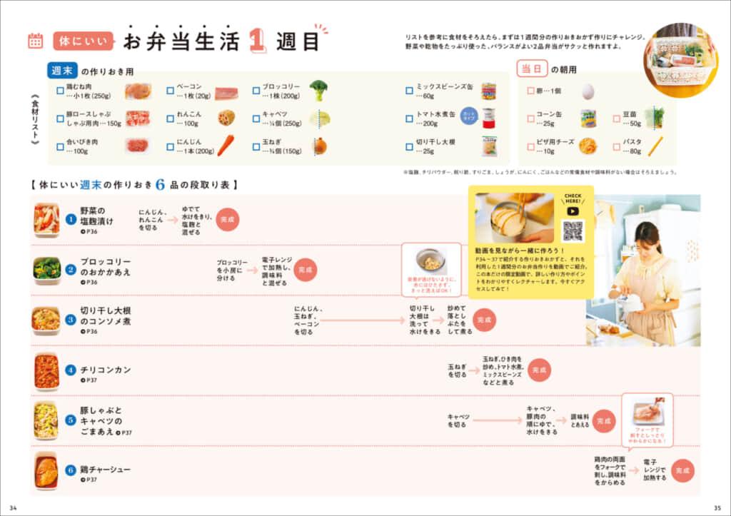 - 一週間分の食材から段取りまで一目瞭然。動画のQRコードつきだから見ながら作れる