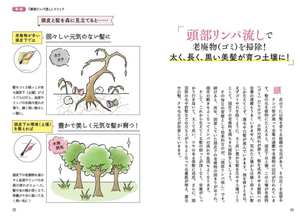 頭皮リンパ流しを毎朝の習慣にしているという著者自身も、59歳とは思えないハリ・コシのある毛量感たっぷりの美髪の持ち主。白髪染めとも、いまだに無縁でいるそうです。