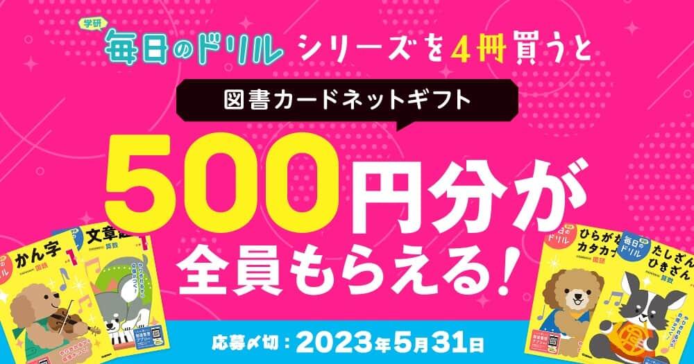 株式会社 学研ホールディングス(東京・品川/代表取締役社長:宮原博昭)のグループ会社、株式会社 Gakken(東京・品川/代表取締役社長:五郎丸徹)は、現在開催中の、春の学びを応援キャンペーン「ガッケンのハルガク2023」にて、小学生向け学習ドリル「毎日のドリル」シリーズを4冊お買い上げいただいた方全員に、500円分の図書カードネットギフトをプレゼントするキャンペーンを2023年2月1日(水)よりスタートいたしました。
