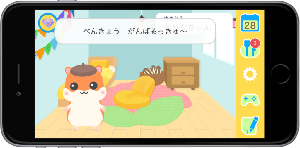 勉強をがんばると、キャラクターが育つので、やる気が続きます。