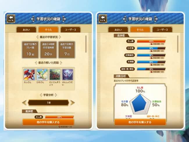 【2】学習を進めるとドラゴンがなかまに!進捗度に応じてなかまのドラゴンが増える!