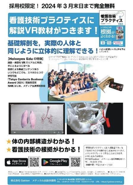株式会社 学研ホールディングス(東京・品川区/代表取締役社長:宮原博昭)のグループ会社、株式会社 Gakken(東京・品川/代表取締役社長:五郎丸徹)は、2023年4月より看護教育に活用できる「解説VR動画教材」を配信いたします。本サービスは『看護技術プラクティス 第4版動画付き』(株式会社 Gakkenメディカル出版事業部発行)をご採用いただいている看護師養成校への特典として、2024年3月末まで完全無料で提供します。
